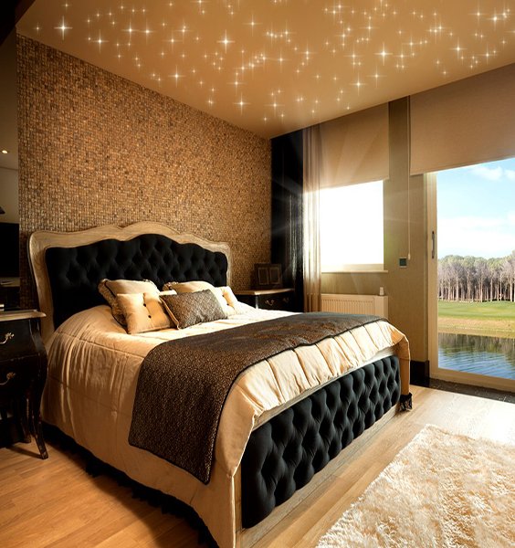 Ne postoji ništa poput zvjezdanog stropa za stvaranje bajkovite, tople i romantične atmosfere unutar sobe. Pričvrstite diodu nasumično na površinu projekta kako biste brzo i jednostavno napravili zvjezdano polje. Istovremena upotreba dioda različitih intenziteta omogućit će vam stvaranje zviježđa kao i iluziju svjetlucanja kako biste dodali dubinu ovom omiljenom ukrasu. Diode u boji čak će pridonijeti originalnosti vaše kreacije.