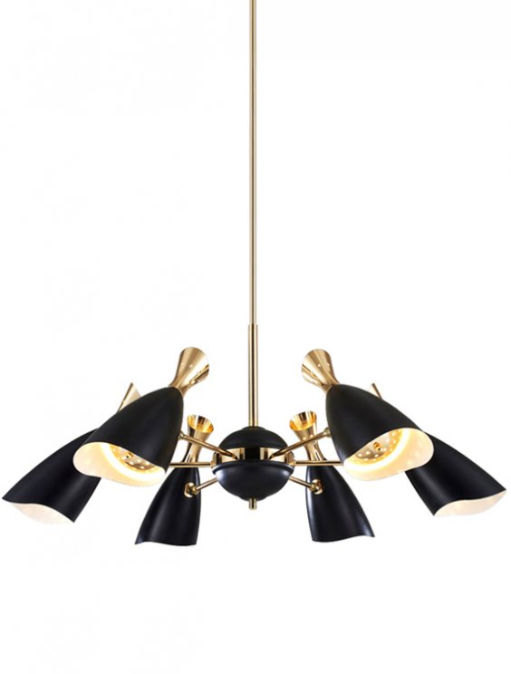 Led svijetiljka sa 8 pomičnim glava sa disperzijom svijetla prema dolje i dekorativnim svjetlom na pozadini glave.